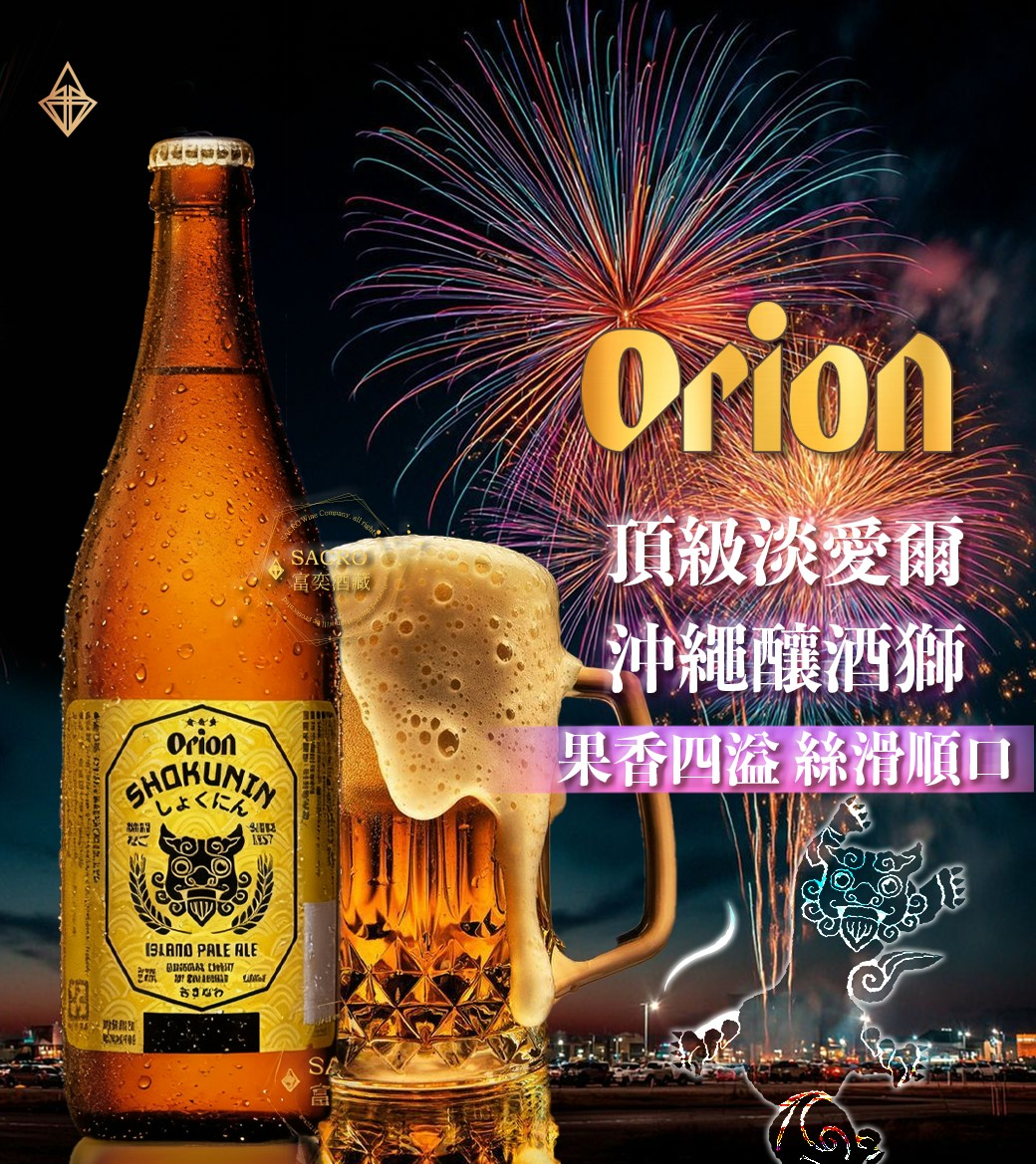 酒款介紹:Orion沖繩釀酒獅 頂級淡愛爾 是沖繩釀酒技藝與大自然完美結合的極致代表。擁有如陽光般璀璨的金黃色澤,細膩的泡沫為其增添高級質感。果香四溢,融合柑橘、麥芽與新鮮啤酒花的清新香氣,打造甘甜與微苦並存的絕妙平衡。每一口都像是沉浸在沖繩的微風與陽光中,帶來放鬆且充滿層次的美好體驗。 |