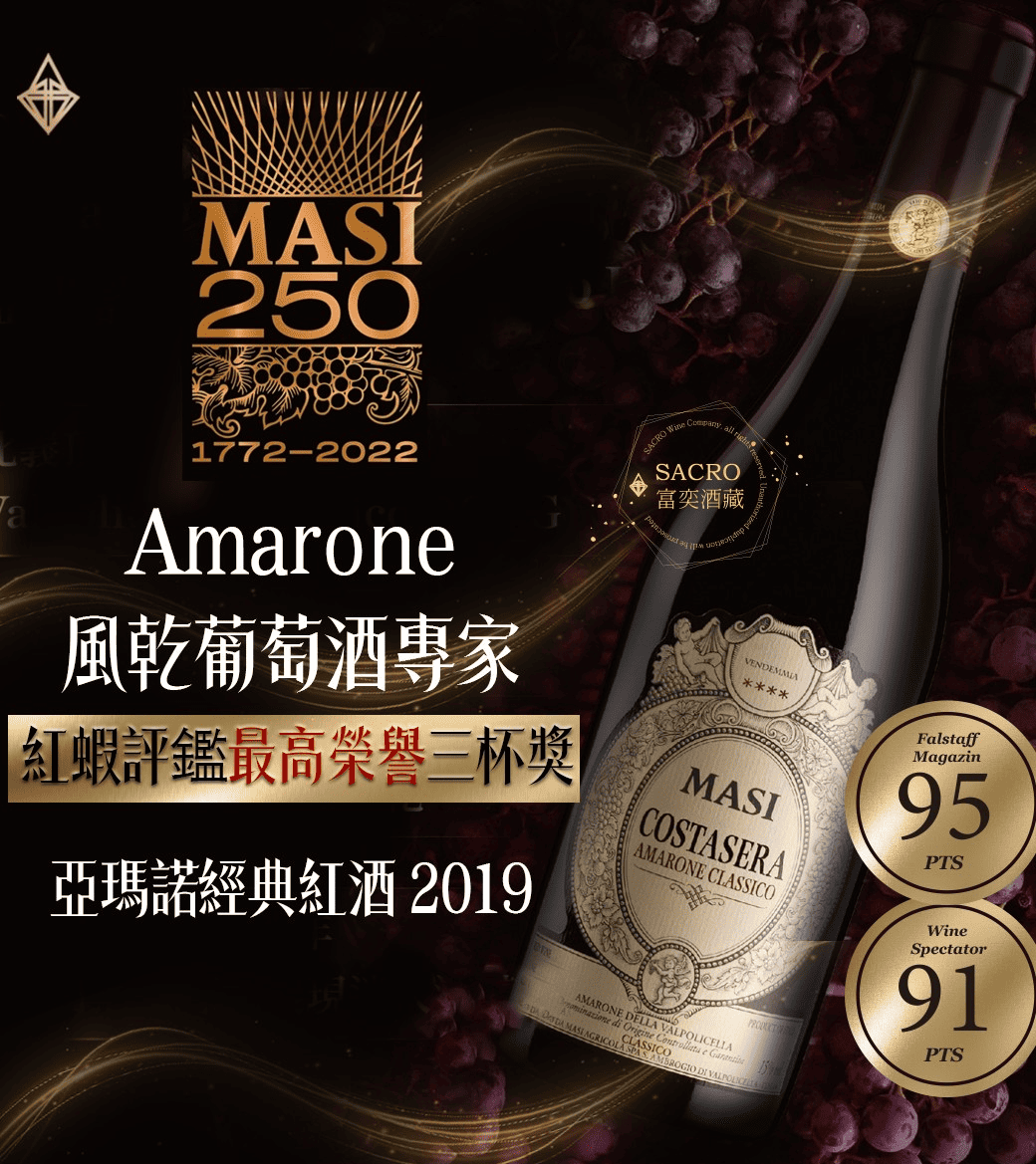 | 酒莊介紹:MASI 瑪西酒廠 1964年獨創Ripasso葡萄酒,是以Amarone風乾葡萄酒為原型參考,創作出在半風乾葡萄(Recioto)皮與渣中倒入新鮮葡萄(Valpolicella),以二次發酵釀成的新品種紅酒,保留新鮮葡萄酒的活力,但顏色與風味都更深沉複雜。目前酒廠發展有100%風乾、瑪西二次發酵與混合技術(把新鮮葡萄酒與風乾葡萄之釀酒混合)等不同作品。此外,瑪西還與中古世紀詩人但丁(Dante)家族後代葡萄園合作,以當地品種科維納(Corvina)、隆迪內納(Rondinella)和無性繁殖系品種的Molinara Serego Alighieri葡萄,大膽釀出以「櫻桃木」桶陳4年的Vaio Armaron紅酒,是酒評家與藏家們的最愛。 受威尼斯傳統風乾技術(Appassimento)釀製的酒款上貼有APPAXXIMENTO®(瑪西風乾技術)標誌,其酒色、風味與單寧都極為濃縮豐富,瑪西目前產5種不同的阿瑪羅內(Amarone)風乾葡萄酒,是全球最齊全的系列。 葡萄風乾後重量下降40%,其釀出的顏色、單寧都變得濃稠豐富,風乾過程產生的貴腐黴則使葡萄產生甘油,令酒液更加柔和可口……,義大利葡萄風乾法(Appassimento)遠從羅馬帝國就開始風行,原先多釀出甜型酒款,直到釀造時酒中酵母吃光了糖分而「意外」誕生干型酒阿瑪羅內(Amarone)而驚艷國際市場,18世紀由Boscaini家族擁有的瑪西酒廠,就是將義大利傳統風乾葡萄文化添入現代化思維的創新代表,更是反對一味引進國際品種、復育當地原生種的先驅者,創廠已超過200年歷史。 瑪西現任的主人——家族第六代桑德羅.波斯卡尼(Sandro Boscaini)對區域葡萄栽培法及區域土質不懈研究,致力讓每一塊單一區域都釀出無一無二的酒款,其家族經營時不僅買下該區幾處最佳葡萄園,更管理貴族Serego Alighieri(詩人但丁後裔)擁有的超古老葡萄園,種有根瘤蚜蟲病發生前的Molinara原生種,現在由瑪西來代釀經銷,更顯其品質認證。 桑德羅的父親桂鐸.波斯卡尼(Guido Boscaini)更是位眼光獨到的創意釀酒人,曾以釀出標誌性酒莊酒(仿效法國單一葡萄園Crus)為目標,於1950年代打造出瑪西第一款單一葡萄園Campolongo di Torbe,這支Cru版本的Amarone被視為義大利單一園的先驅,其後桂鐸又在1964年獨創Ripasso葡萄酒——Campofiorina來與超級托斯卡尼(Super Tuscan)浪潮抗衡,作法是將Valpolicella紅酒中加入風乾葡萄皮與渣,將Ripasso這般遠溯至中古時期的釀酒法強勢回歸,使Valpolicella不再淡薄更添滿風韻。到了其子桑德羅.波斯卡尼,又把Ripasso再進化,將父親原創再傾回「整顆」半風乾的乾縮葡萄(而非皮渣),酒體複雜度更高更優雅,將義大利原生葡萄酒再度推往創新舞台。 2015年,瑪西在義大利股票交易所中小企業板塊掛牌上市,成為當時義大利AIM市場中市值最高的一支股票,樹立優質義大利葡萄酒的品牌形象,正位居當地葡萄酒全球化的龍頭地位。 |