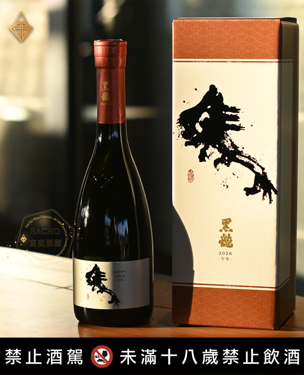 酒款介紹:\\ 2026 丙午年.馬年新春限定 // 這款針對 2026 年(午年)推出的干支限定酒,是黑龍酒造極為稀有的「純米大吟釀 生酒」。一般而言,黑龍的高階酒款多經過熟成火入,除了每年二月限定的「火いら壽」之外,唯有這款干支酒能讓酒迷品嚐到黑龍純米大吟釀最新鮮、無修飾的「生酒」風采。 酒標沿襲了黑龍一貫的莊重風格,採用已故日本書法大師「稻村雲洞」生前留下的墨寶。蒼勁有力的「午」字書法,搭配沉穩的棕色調與白色禮盒,象徵著駿馬奔騰的生命力與新年的吉祥寓意,是年末年始送禮或圍爐祝酒的絕佳選擇。 |
