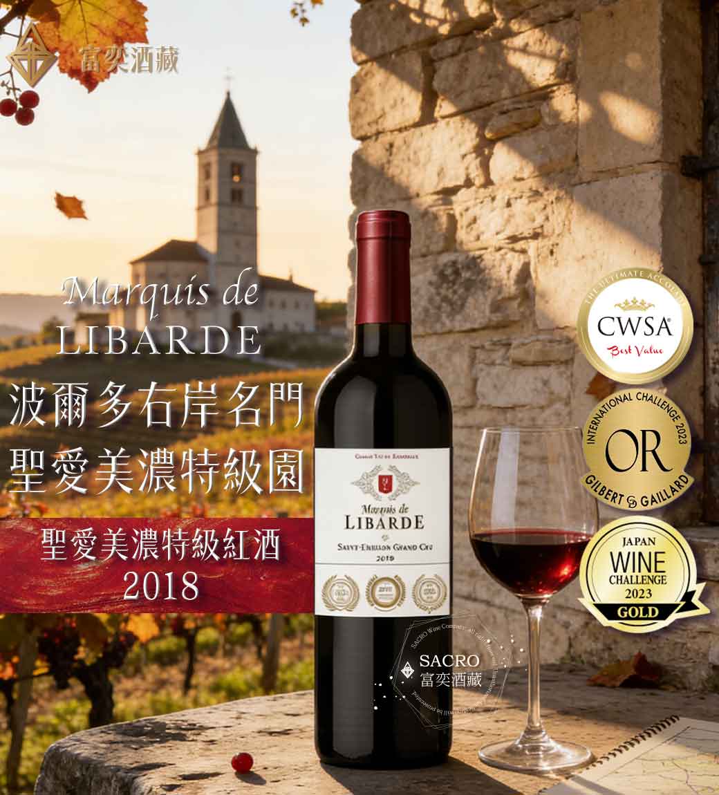 酒莊介紹:Marquis de Libarde 是 Vignobles Gabriel & Co 旗下的一個品牌。 Vignobles Gabriel & Co 位於波爾多右岸,這家酒業集團採取了一種獨特的合作模式,他們集合了多個家族小酒莊,統一進行現代化的釀造管理與銷售,確保每一瓶酒都能達到高標準的品質。他們的理念是釀造出「忠實反映風土(Terroir)」且「真誠」的葡萄酒。這款 Marquis de Libarde 便是他們在聖愛美濃產區展現工藝的代表作之一,風格偏向現代、果香豐沛且易於親近 |